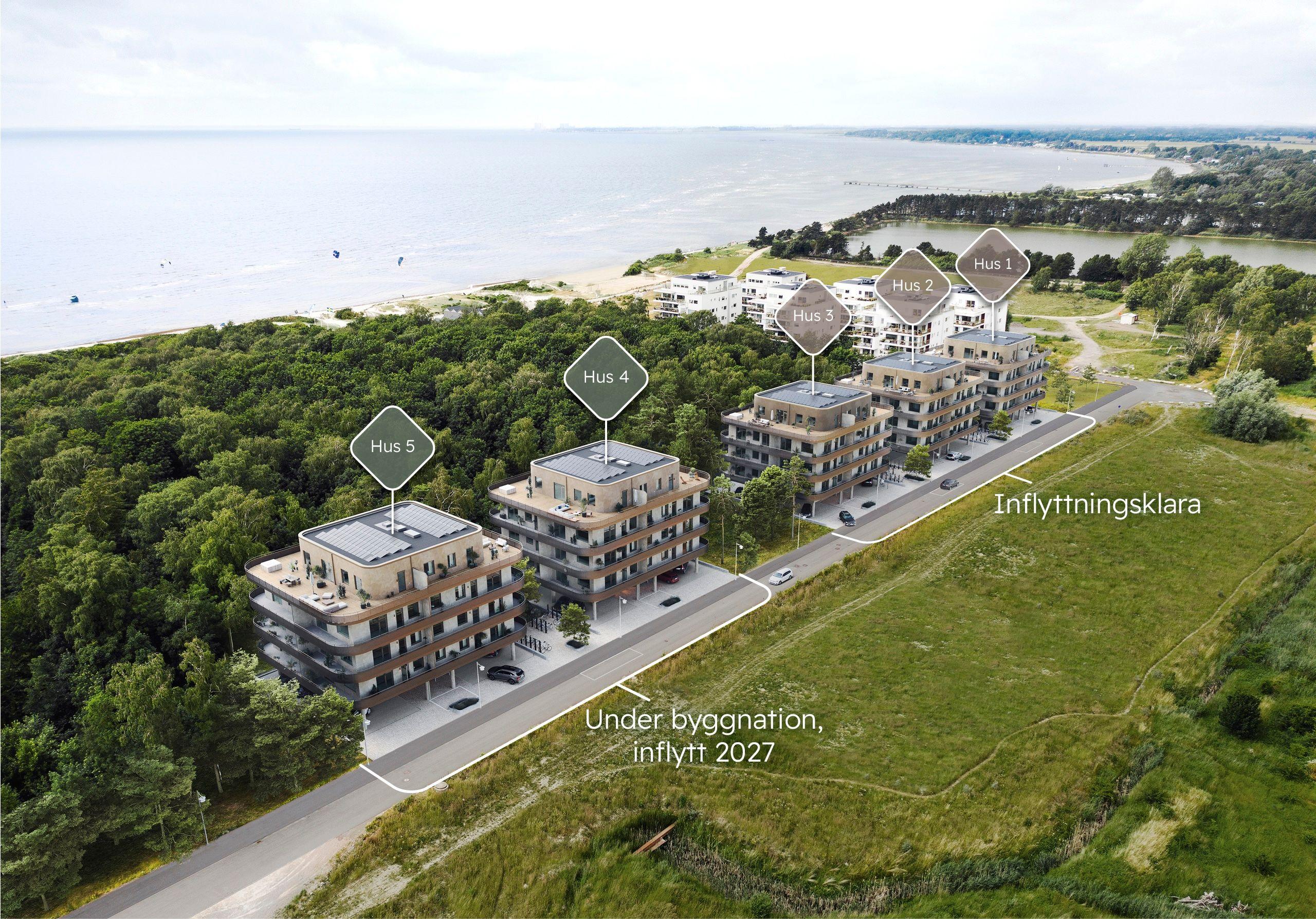 Det är inte ofta det byggs lägenheter i så här strandnära lägen. Nu bygger vi de två avslutande husen, totalt 27 lägenheter från 70 till 216 kvadratmeter, alla med härligt ljusinsläpp och generöst tilltagna balkonger.