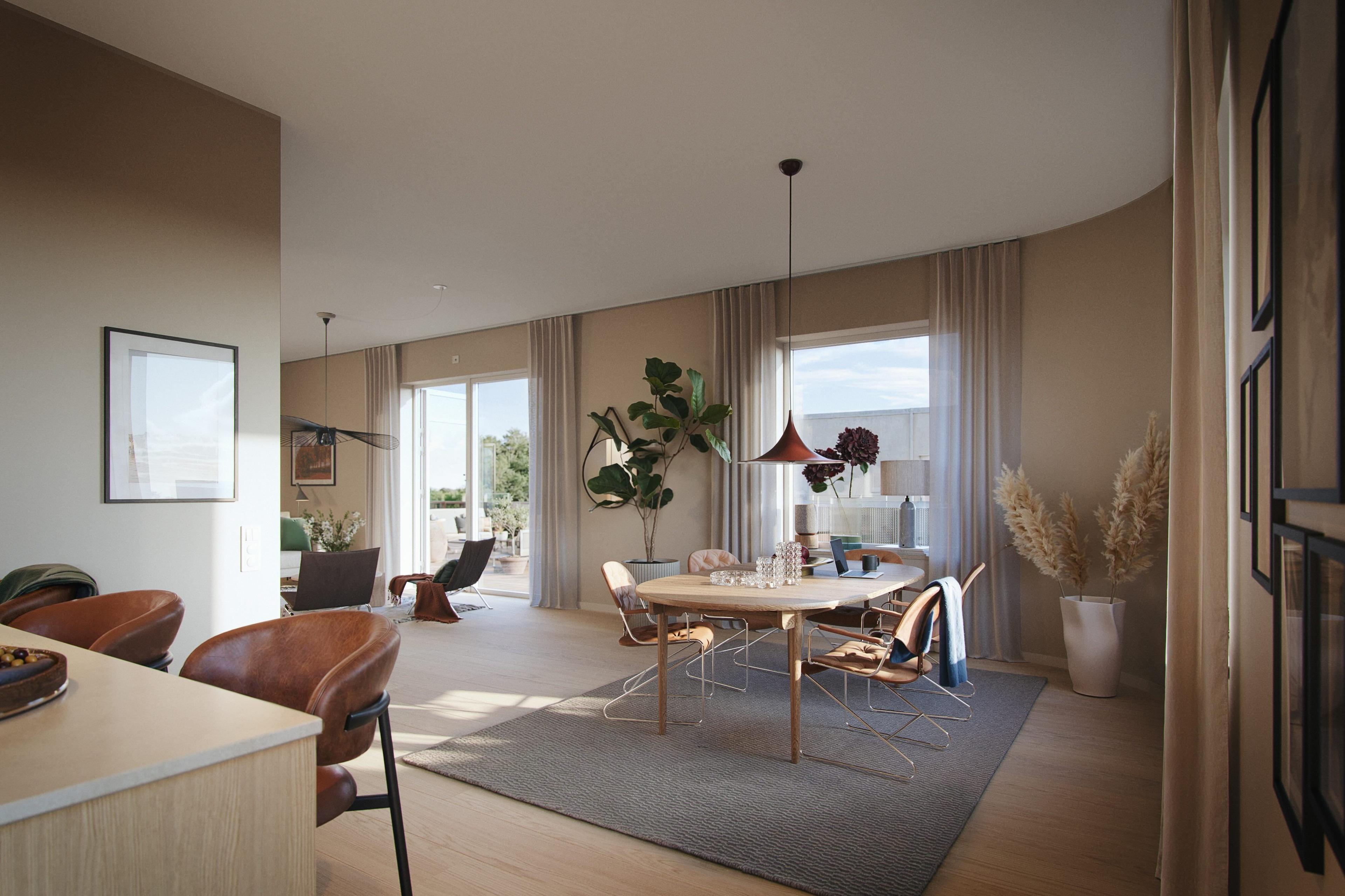 Andra etappen av Kvirkelhusen blir också den sista. Med hus fyra och fem blir den eleganta raden fulländad. Mjukt rundade hörn, generösa balkonger och fantastisk rymd ger en alldeles speciell känsla i de fina bostäderna. Kanske blir en av dem ditt nya hem?